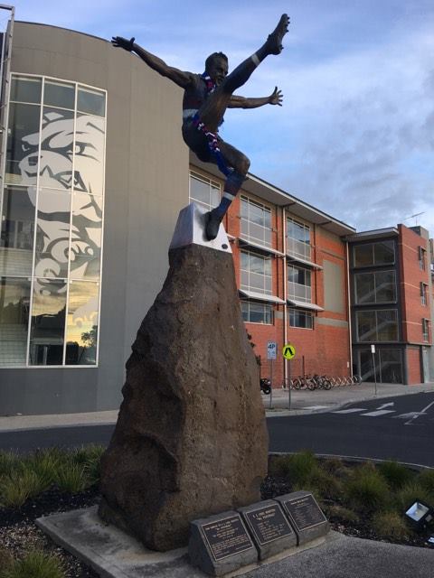 A photo in front of the statute of Ted Whitten was followed by a walk towards Barkly Street, where scenes of pandemonium were unfolding.