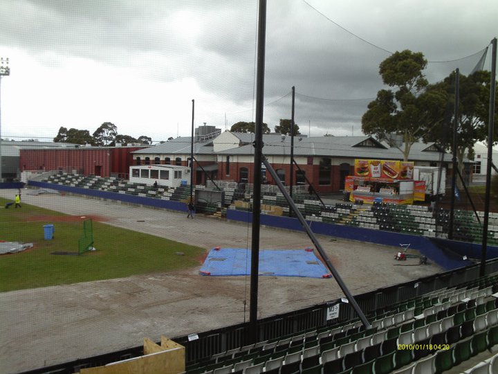 The above picture shows where the league kicked off in 2010, a stadium, barely recognisable for baseball, with no shelter to protect fans on what was a very cold and wet Melbourne afternoon, where not a pitch was thrown.